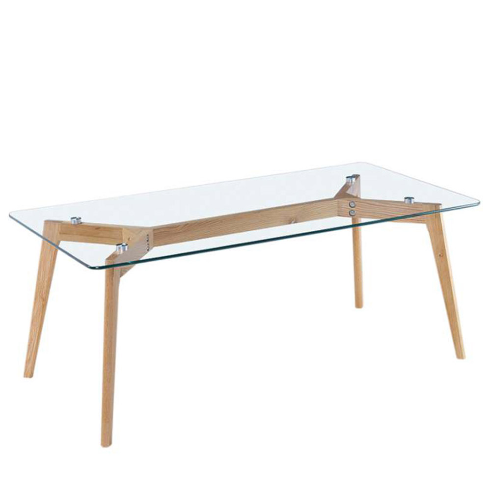 Wooden-legged, glass-topped, rectangular low table BF-T014